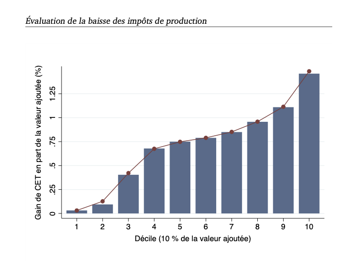 Les résultats montrent que la baisse des impôts de production peut avoir un impact significatif sur le montant des impôts dus par les entreprises, mais qu’elle n’a pas nécessairement d’effet important sur les variables d’activité économique comme les ventes ou l’investissement. Et c’est assez clairement expliqué dans la synthèse des résultats. Vous le verrez avec la citation plus loin.